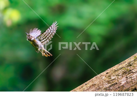 可愛的啄木鳥(啄木鳥家族)起飛東京八王子市八王子城遺址拍攝於 2024 年 5 月