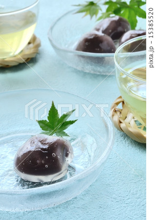 一套茶和日本糖果 Kuzumochi 水彩插圖