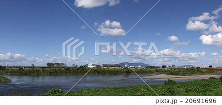 水上廣場,玩水,野川河沿岸,野川公園旁邊,晴朗的秋日天空,東京三鷹市大澤