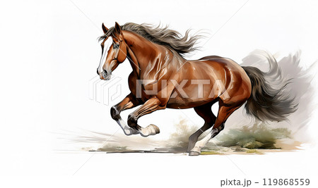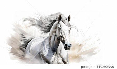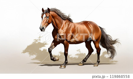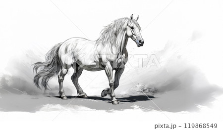 Image of a horse drawing using a brush and black ink on white background. Wildlife Animals. Illustration, generative AI.