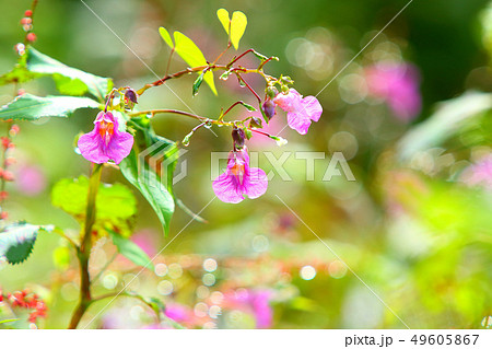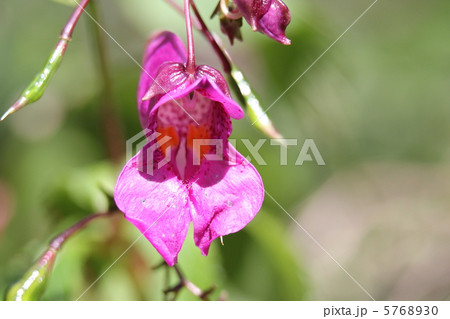 自然植物開花,開花紅色紫色開花在潮濕的昏暗的山谷