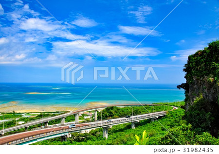 南島 沖繩縣通往大海的大橋,廣闊的藍天碧海