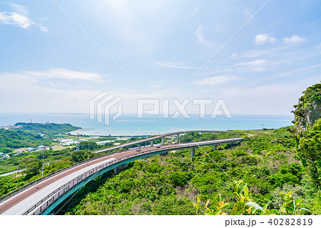 南島 沖繩縣通往大海的大橋,廣闊的藍天碧海
