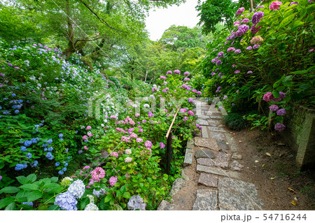 八田寺正殿參道上盛開的繡球花(奈良縣大和郡山市)