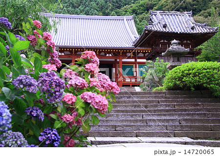八田寺本殿旁盛開的繡球花(奈良縣大和郡山市)