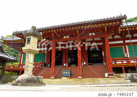 奈良縣近藤寺大殿和盛開的杜鵑花