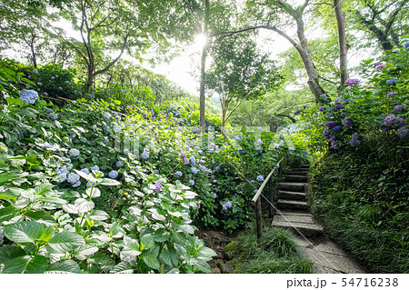 八田寺春日神社參道上盛開的繡球花(奈良縣大和郡山市)