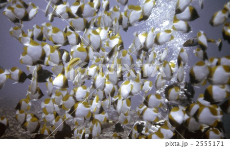 在帕勞海中群集的白色和黃色的Kasumi蝴蝶部落