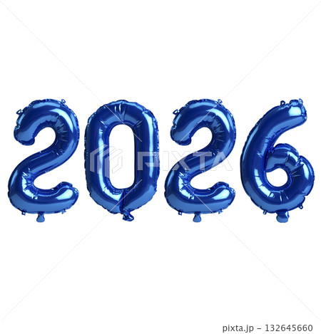3d Illustration of Blue 2026 Balloon Numbers on transparent Background