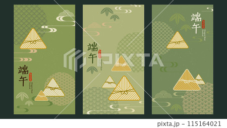 Hand drawn chinese cloud with Japanese pattern vector. Oriental bamboo branch decoration with logo design, flyer, banner or presentation in vintage style. Watercolor texture with geometric icons
