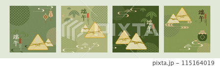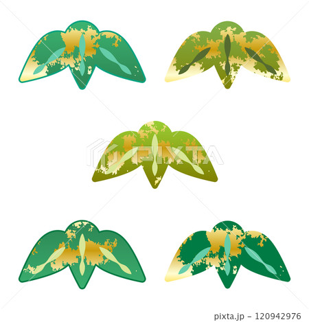 一組手繪可愛竹葉-金色風格-日式新年形象裝飾材料等。