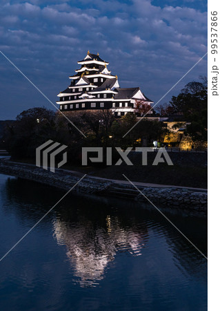 日本岡山縣岡山市燈火通明的岡山城