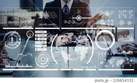 商務人士會議群組和數位科技概念橫幅和廣告的水平視覺
