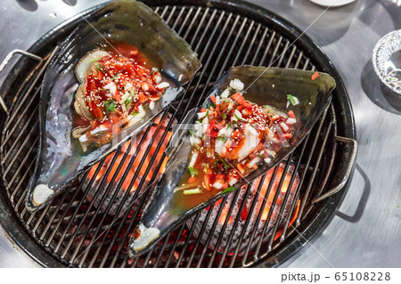 豬肉、海鮮和蔬菜的組合(韓國巨濟島)