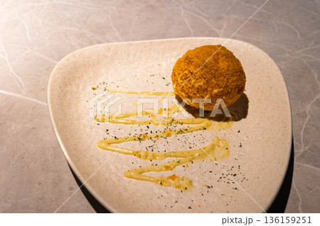台灣夜市小吃:炸魚丸、糯米飯和糖醋