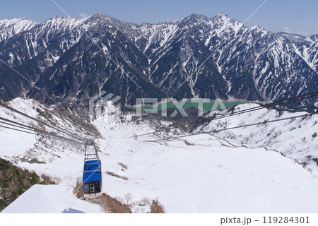 5月上旬的立山黑部阿爾卑斯山路線、從黑部平大觀峰站出發的立山纜車、立山連峰的景色