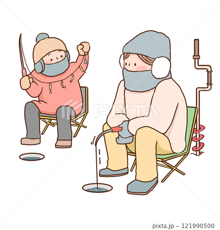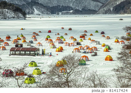 Wagashi釣魚釣魚阿寒湖的冬天圖像北天空的圖像