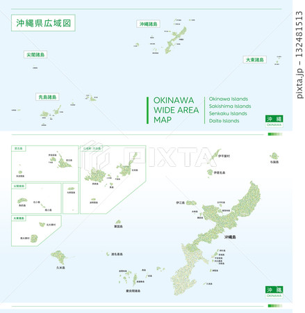 沖繩縣地圖,行政區劃以灰色顯示(英文)