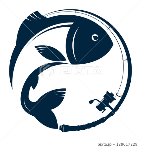 Fish and rod with bait, design for fishing