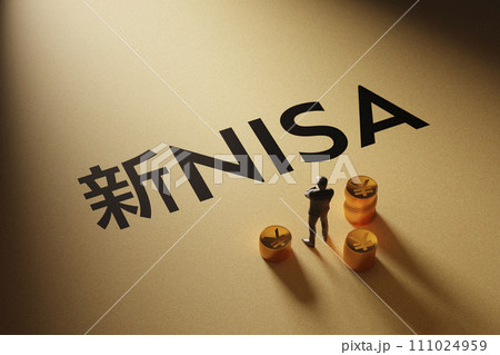 聚光燈照射下的“New NISA”標題圖/3D渲染