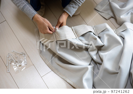 年輕女子解開窗簾