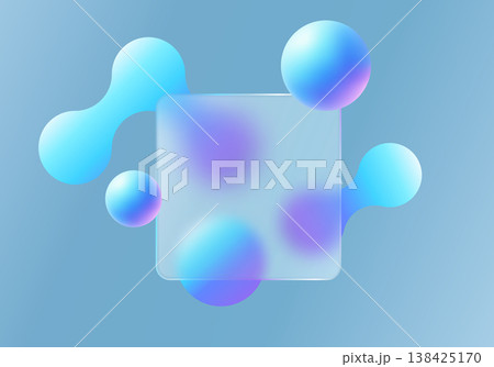 Blue glassmorphism composition with translucent square panel and gradient abstract spheres