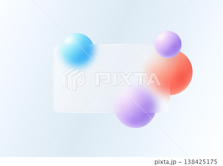 Glassmorphism banner with translucent panel and colorful gradient spheres