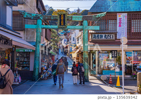 江之島神社(神奈川縣)的青銅鳥居與信徒