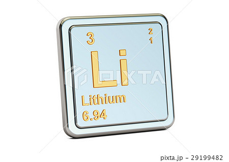 Lithium Mendeleev Table Chemical Element, Mining Industry, Atomic Power Website Landing Page. Miners with Pickaxe