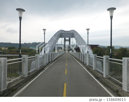 台灣台中 - 2025年4月3日:台灣歷史觀光:東風快速路在建中,穿越岳東風私家車綠色走廊,大甲河梅子鐵路橋