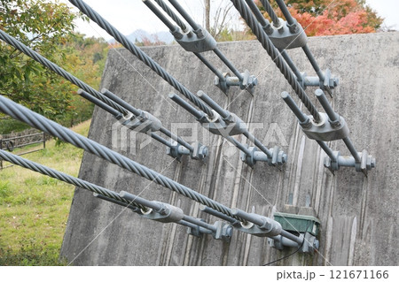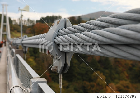 特寫美國加州舊金山金門大橋的橋塔以及遠方的城市景色