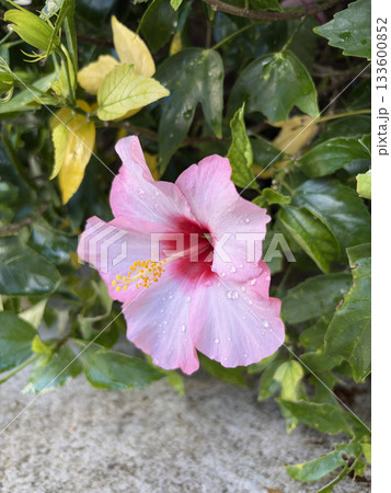 芙蓉的粉紅色花朵承載著夏日炎熱的清新。
