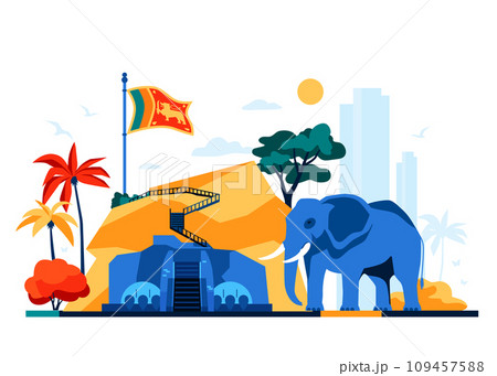 Wild old Sri Lankan elephant (Elephas maximus maximus) eats grass in nature park Udawalawe. Animal in the nature habitat.
