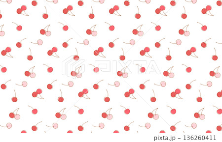 粉紅色和紅色櫻桃圖案,櫻桃印記重疊,線條錯位。