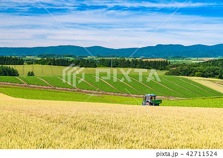 北海道的美瑛山拼湊而成的寬闊的麥田