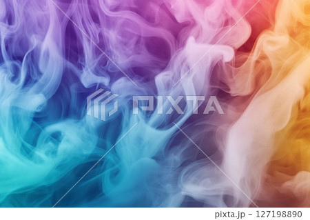 Vibrant colorful smoke cloud blending rainbow hues on transparent background realistic abstract vapor texture