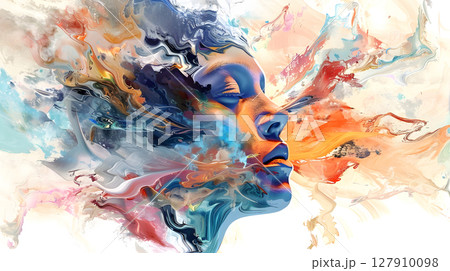 abstract surreal emotional colorful dreamlike melting abstract. face blends into vivid shapes on a soft surreal background. digital artwork for artistic and emotional use.