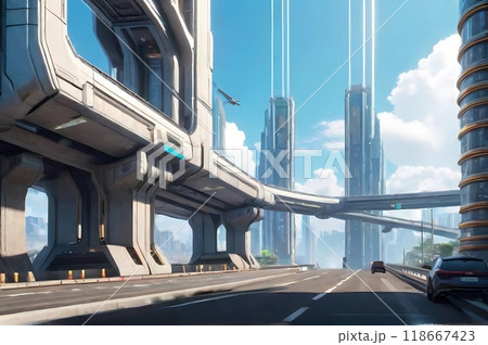 遊戲背景:未來城市景觀,高架公路