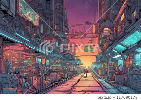 鋼筆畫插圖插畫風格未來城市的城市景觀形象