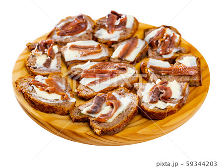 Bread with butter and salted anchovy fillets