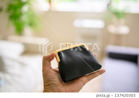 手裡拿著一個扣環錢包
