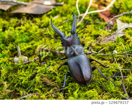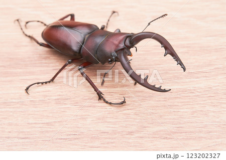 一隻鍬形蟲和一隻犀牛甲蟲棲息在樹上的插圖