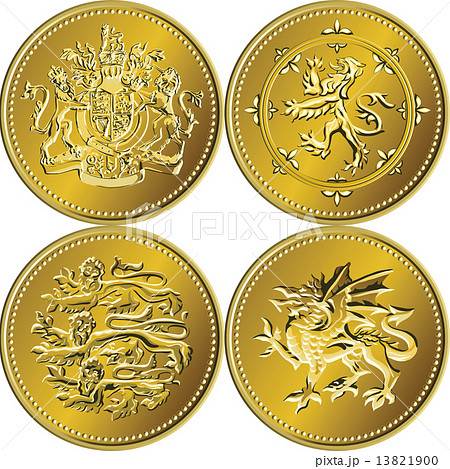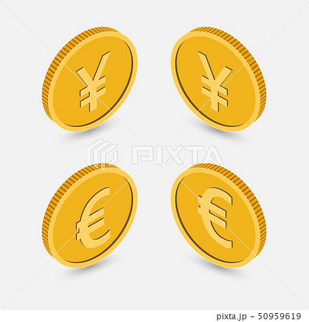 Set of gold coins with 4 major currencies. Dollar, Euro, Pound sterling, Yen