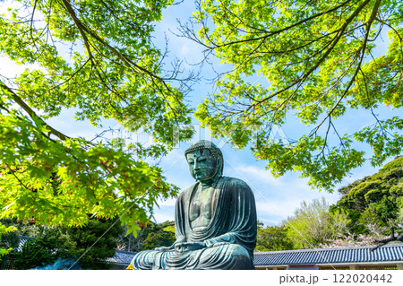 初夏的鎌倉大佛用新鮮的綠色包裹著