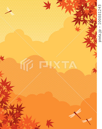 秋天的落葉和紅蜻蜓飛舞的風景背景材料(垂直方向)