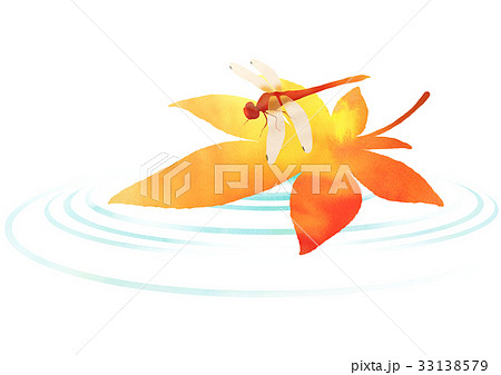 紅蜻蜓和彩色的葉子(水面)