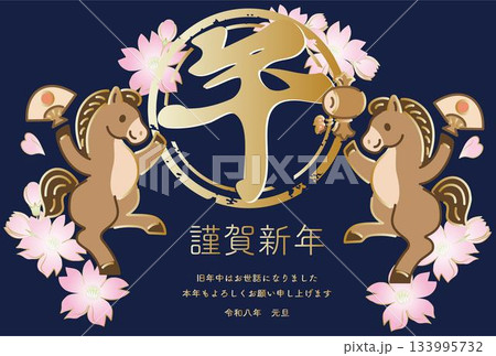 駿馬奔騰與櫻花相映成趣的插圖,是馬年新年賀卡的理想素材。