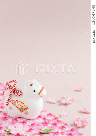馬年新年材料白馬和水引裝飾櫻花花瓣背景