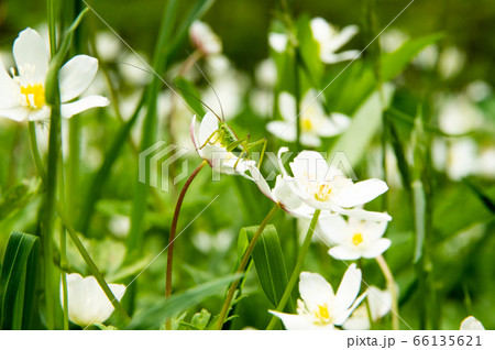 生物昆蟲Tsuyumushi,一隻蚱蜢,但是一個精緻的身體。我不介意盯著,我正在吃花壇花