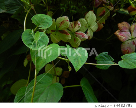 生物昆蟲Rhododendron物種Tsubayushi,Yaeyama的特有物種與前肢紅色。在四肢igo的葉子上伸展雙腿的同時休息
